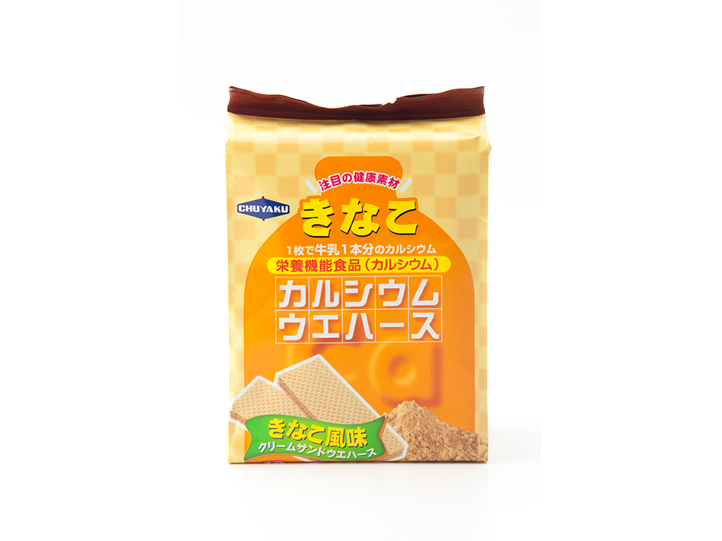 小麦粉(国内製造)、ショートニング、ぶどう糖、きなこ、砂糖、デキストリン、でん粉、乳糖、植物油脂、大豆胚芽抽出物(イソフラボン含有)/貝カルシウム、加工デンプン、着色料(カラメル)、乳化剤、香料、膨張剤、(一部に小麦・乳成分・大豆を含む)